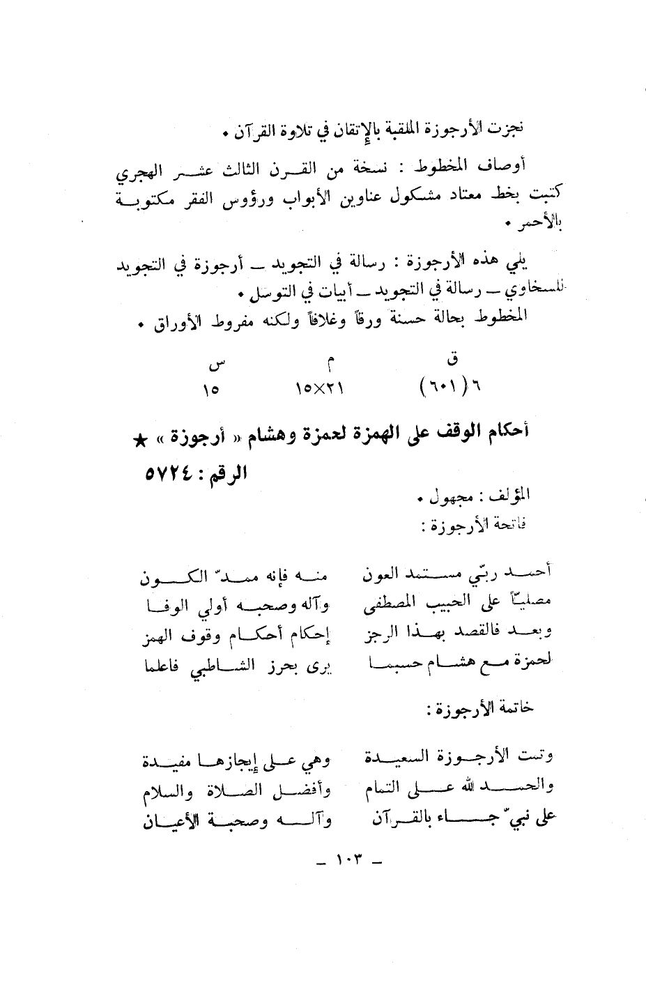 أحكام الوقف على الهمزة لحمزة وهشام «أرجوزة» * الرقم: 5724