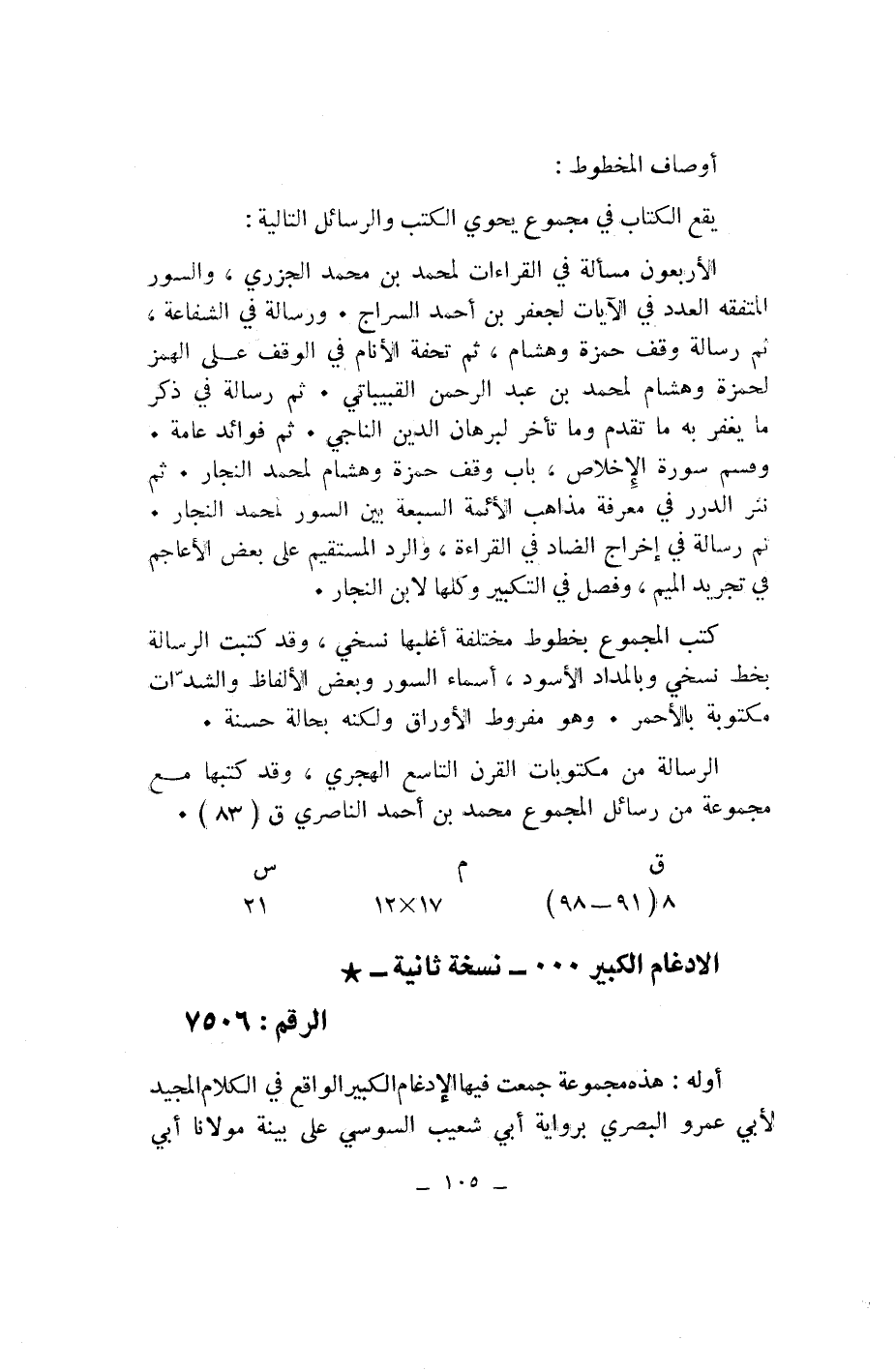 الادغام الكبير ... - نسخة ثانية-* الرقم: 7506