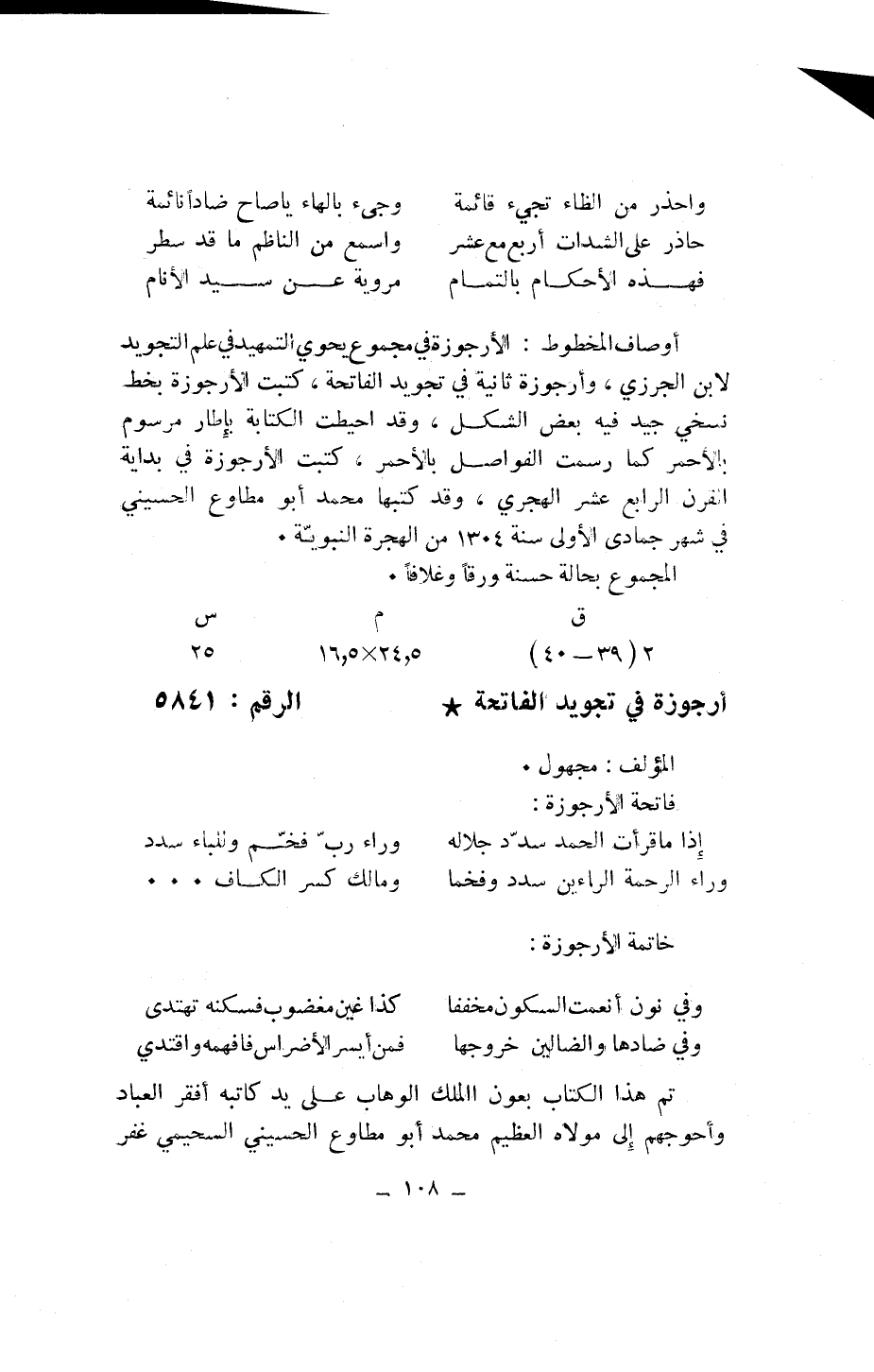 أرجوزة في تجويد الفاتحة* الرقم: 5841