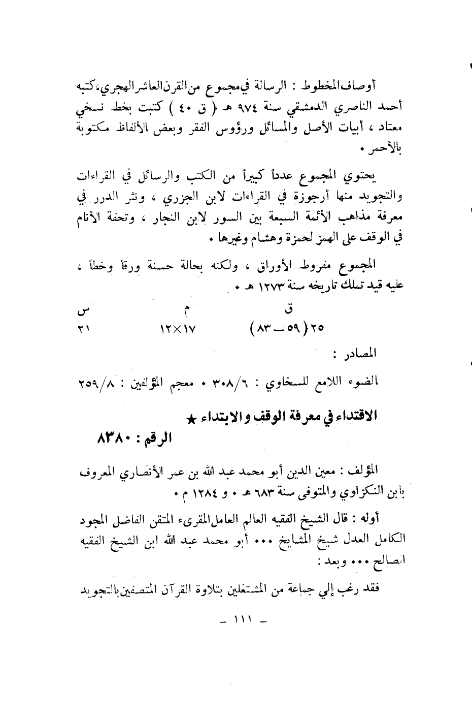 (ق 25 (59 - 83) / م 17* 12/ س 21) المصادر: