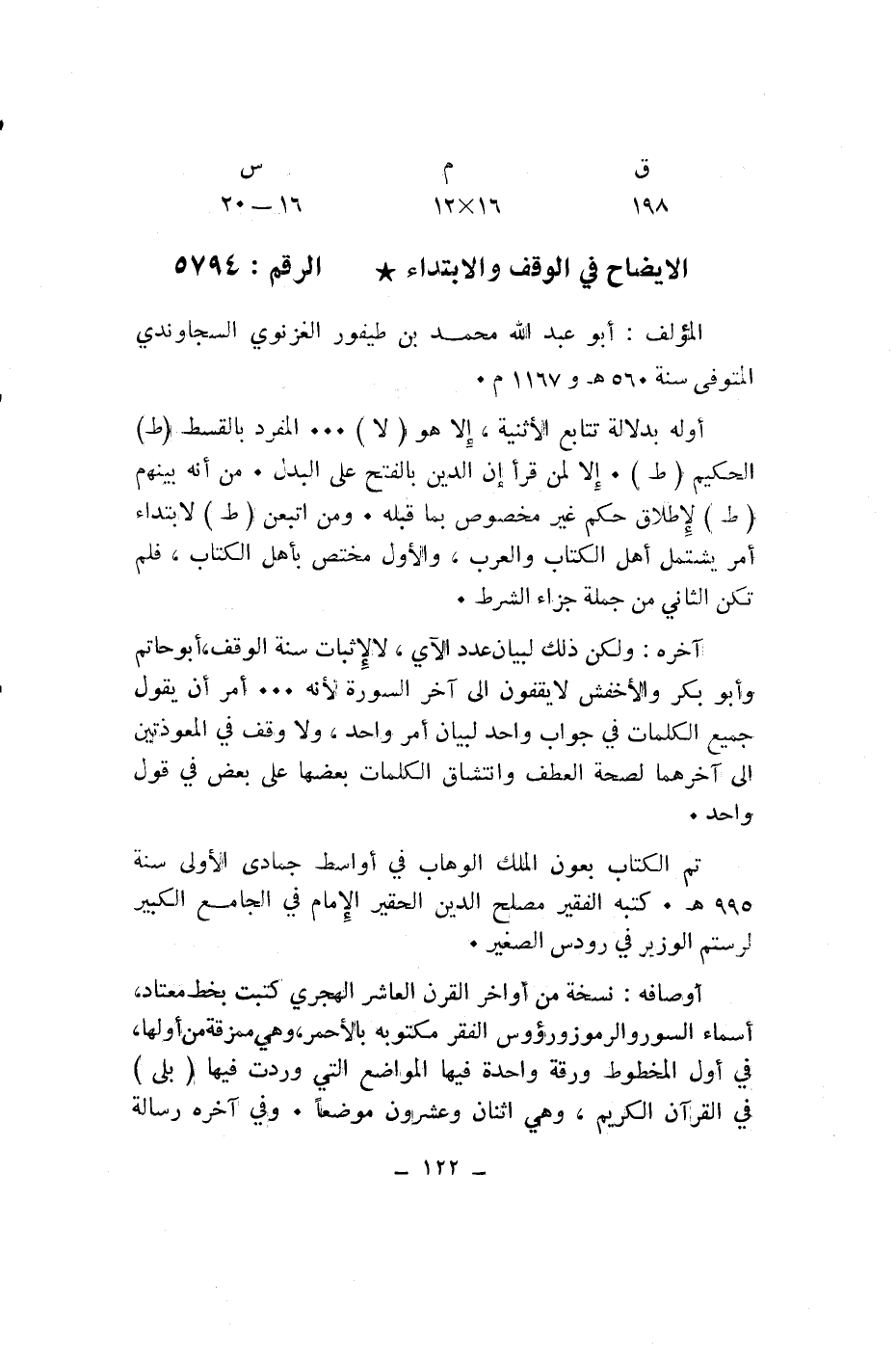 الايضاح في الوقف والابتداء* الرقم: 5794