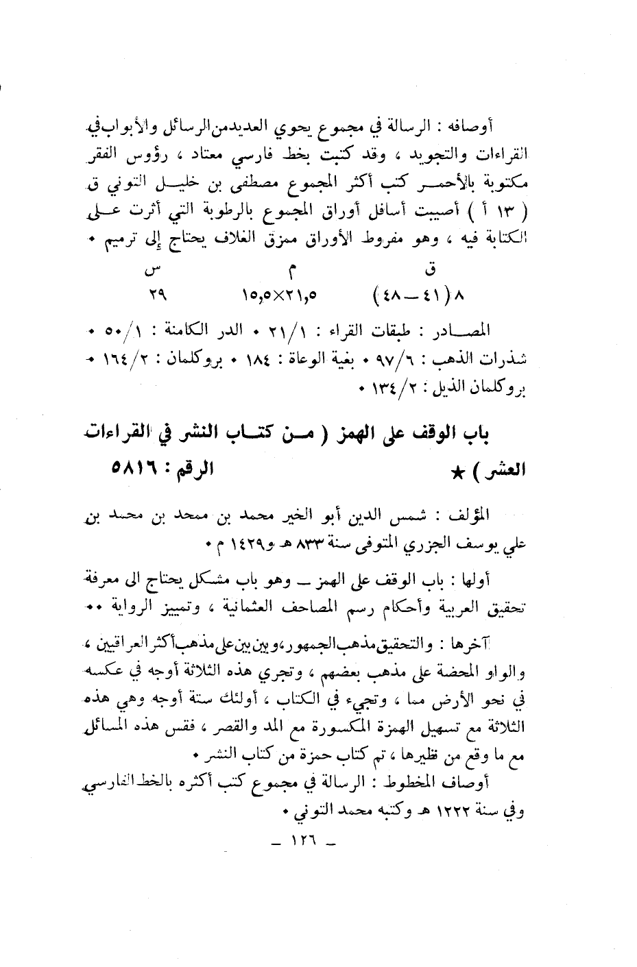 باب الوقف على الهمز (من كتاب النشر في القراءات العشر) * الرقم: 5816