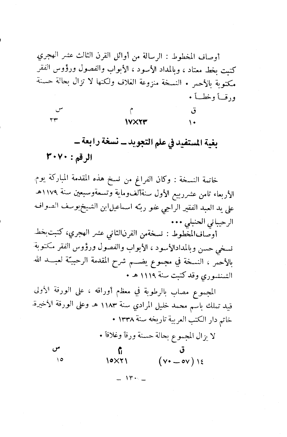 بغية المستفيد في علم التجويد- نسخة رابعة- الرقم: 3070