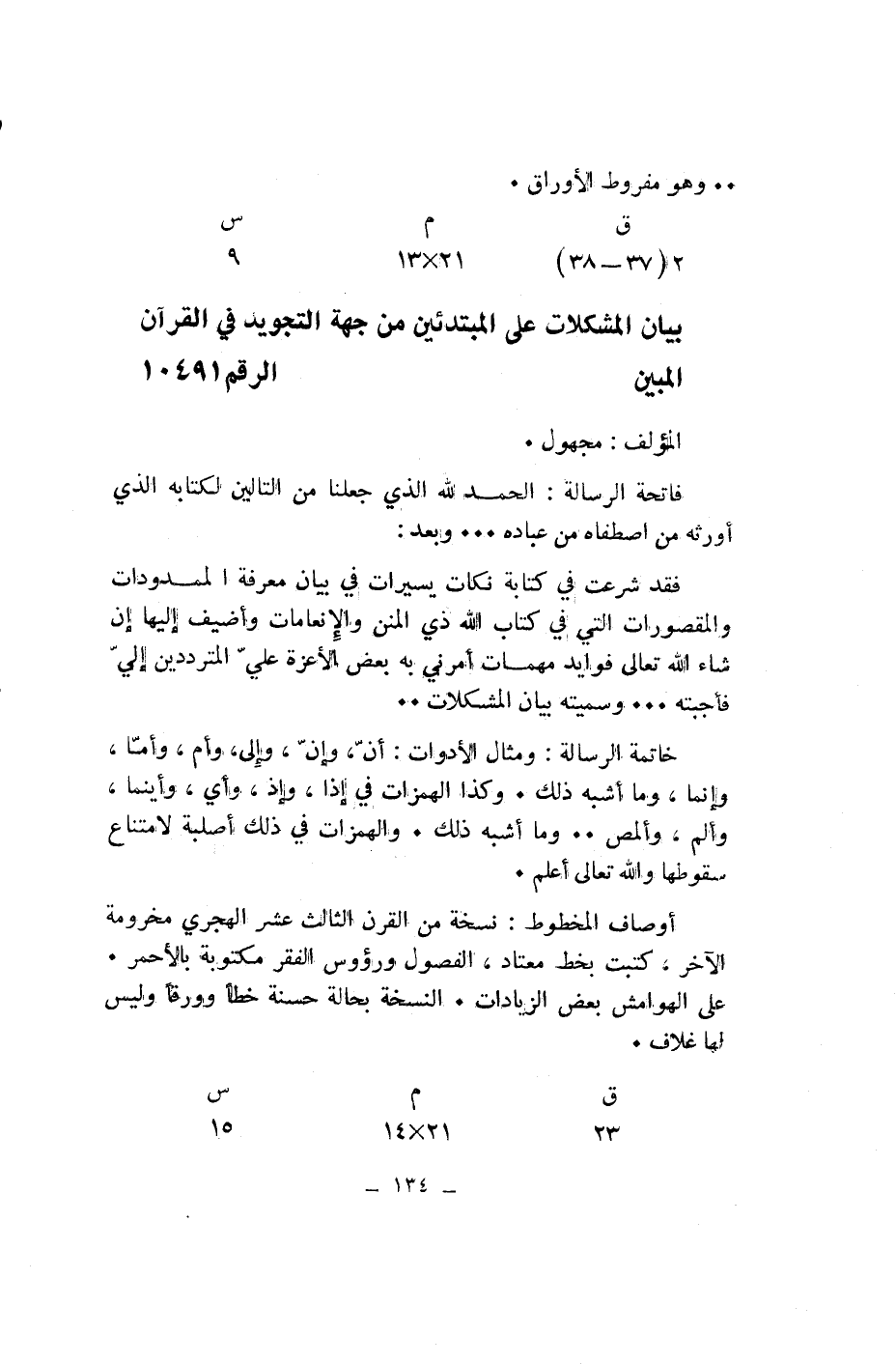 بيان المشكلات على المبتدئين من جهة التجويد في القرآن المبين الرقم 10491