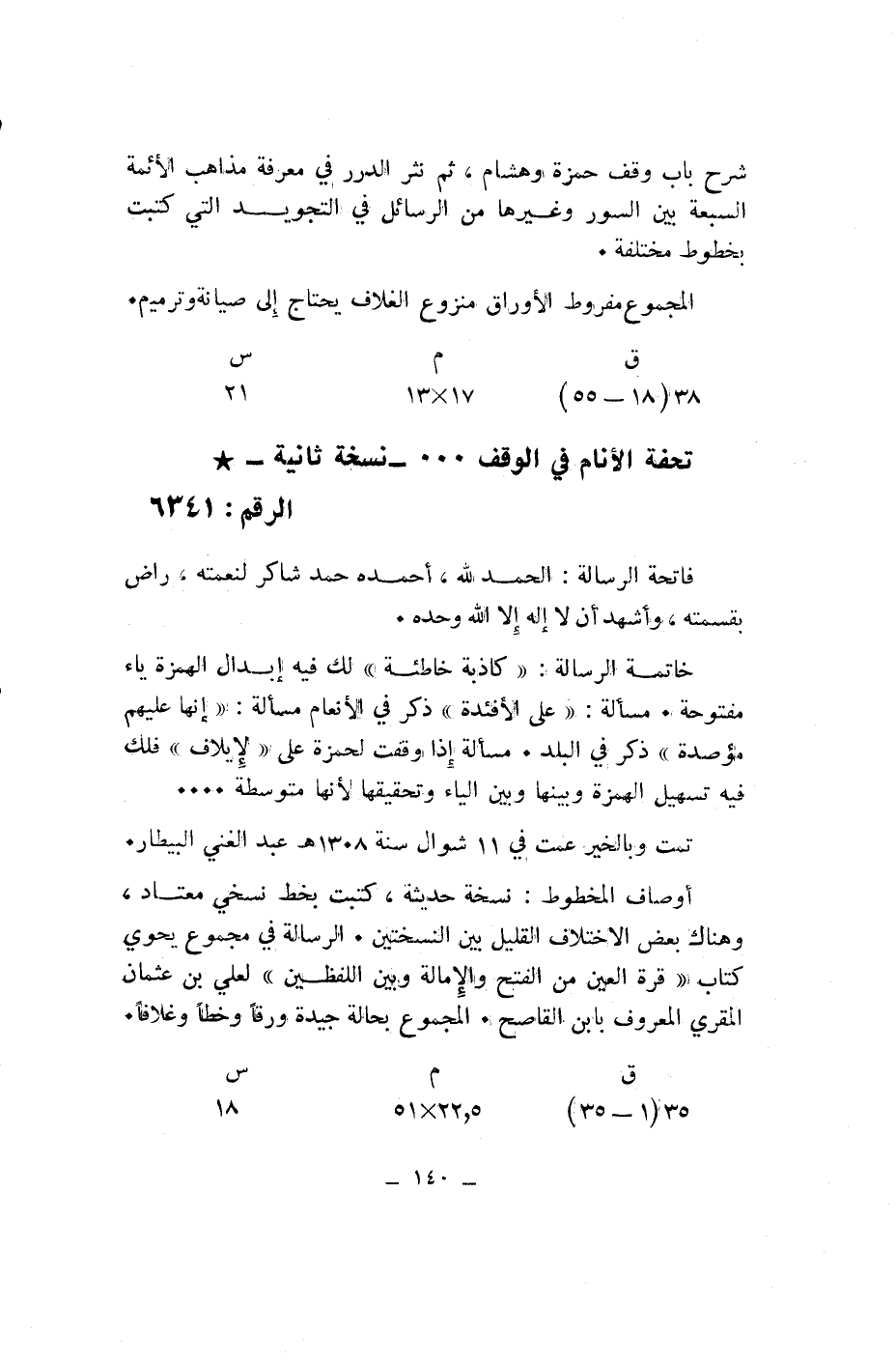 تحفة الأنام في الوقف ... - نسخة ثانية-* الرقم: 6341