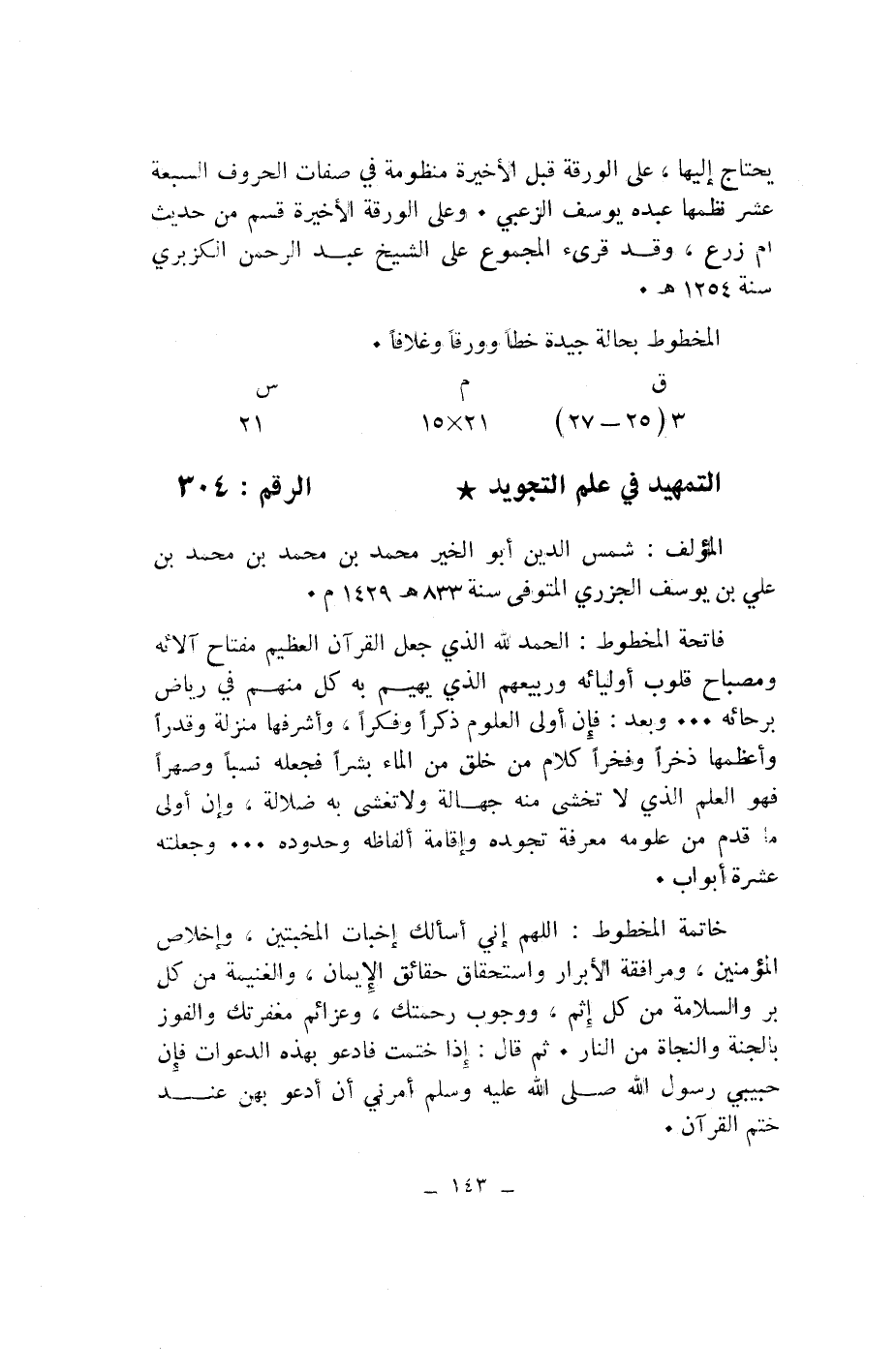 التمهيد في علم التجويد* الرقم: 304