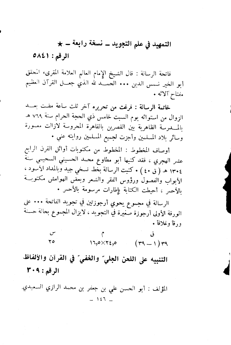 التمهيد في علم التجويد- نسخة رابعة-* الرقم: 5841