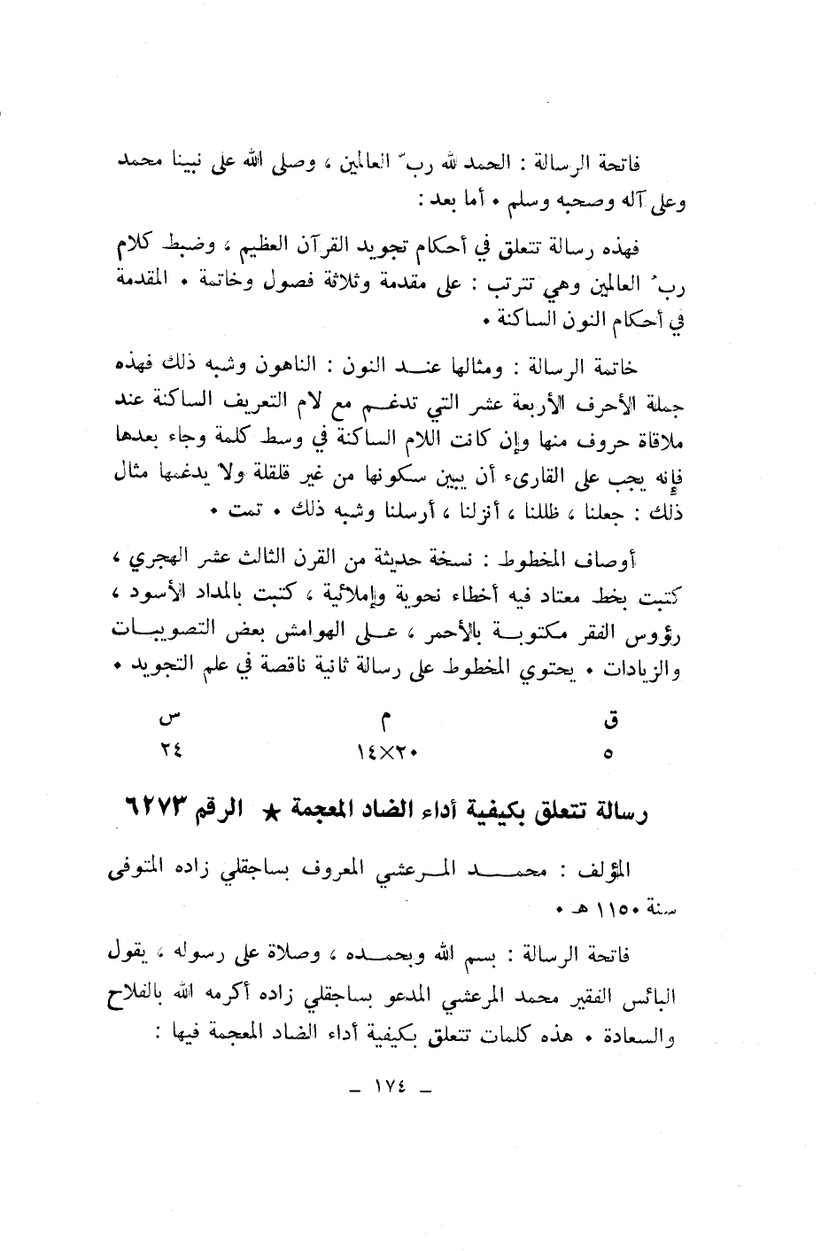 رسالة تتعلق بكيفية أداء الضاد المعجمة* الرقم 6273