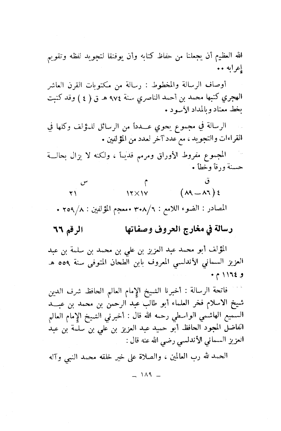 رسالة في مخارج الحروف وصفاتها الرقم 66