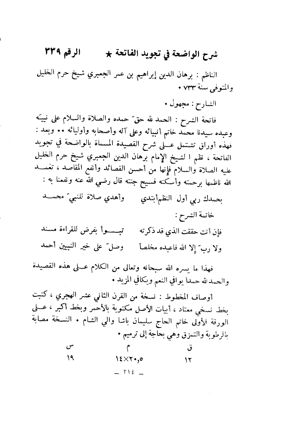 شرح الواضحة في تجويد الفاتحة* الرقم 339