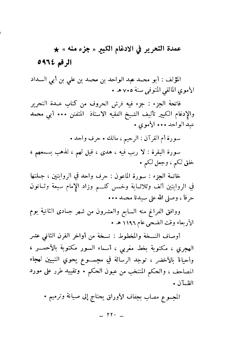 عمدة التحرير في الادغام الكبير «جزء منه» * الرقم 5964