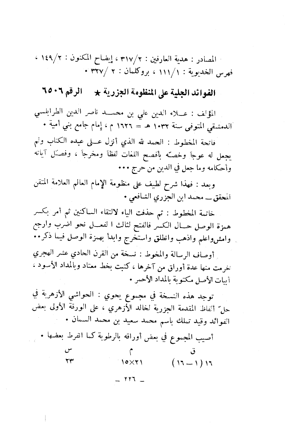 الفوائد الجلية على المنظومة الجزرية* الرقم 6506