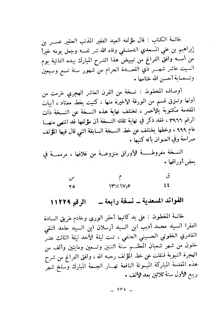 الفوائد المسعدية- نسخة رابعة- الرقم 11229