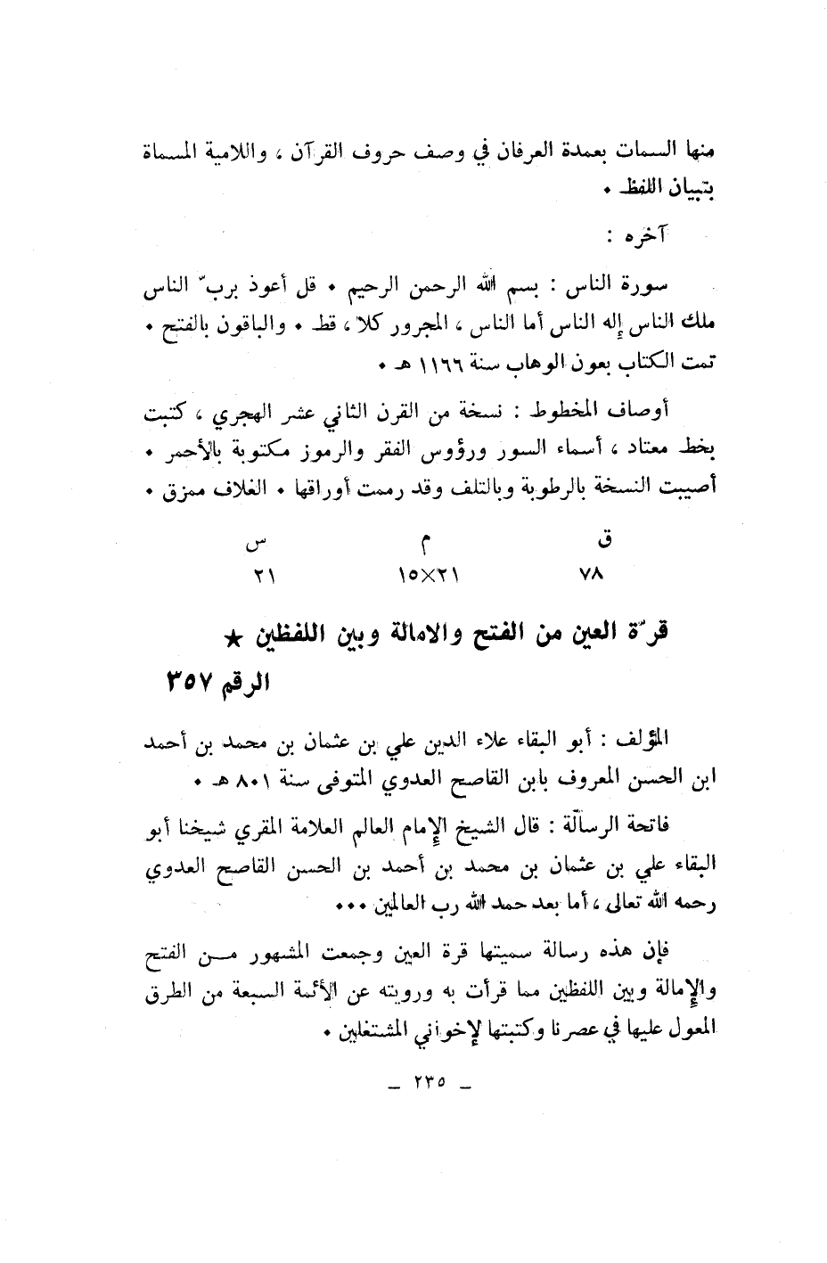 قرّة العين من الفتح والامالة وبين اللفظين* الرقم 357