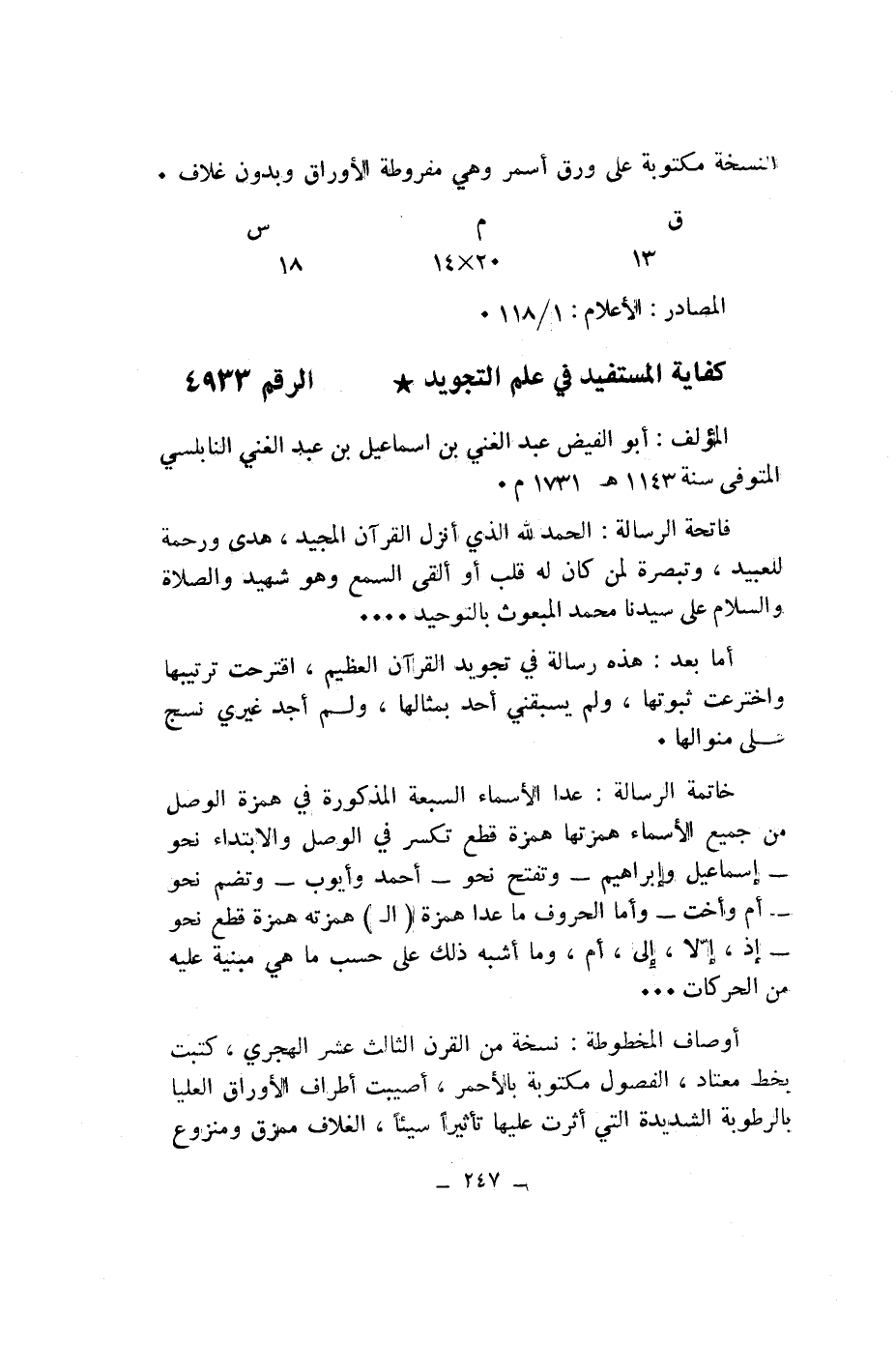 كفاية المستفيد في علم التجويد* الرقم 4933