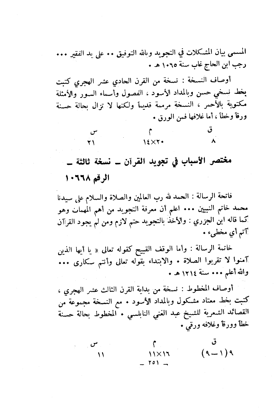 مختصر الأسباب في تجويد القرآن- نسخة ثالثة- الرقم 10668