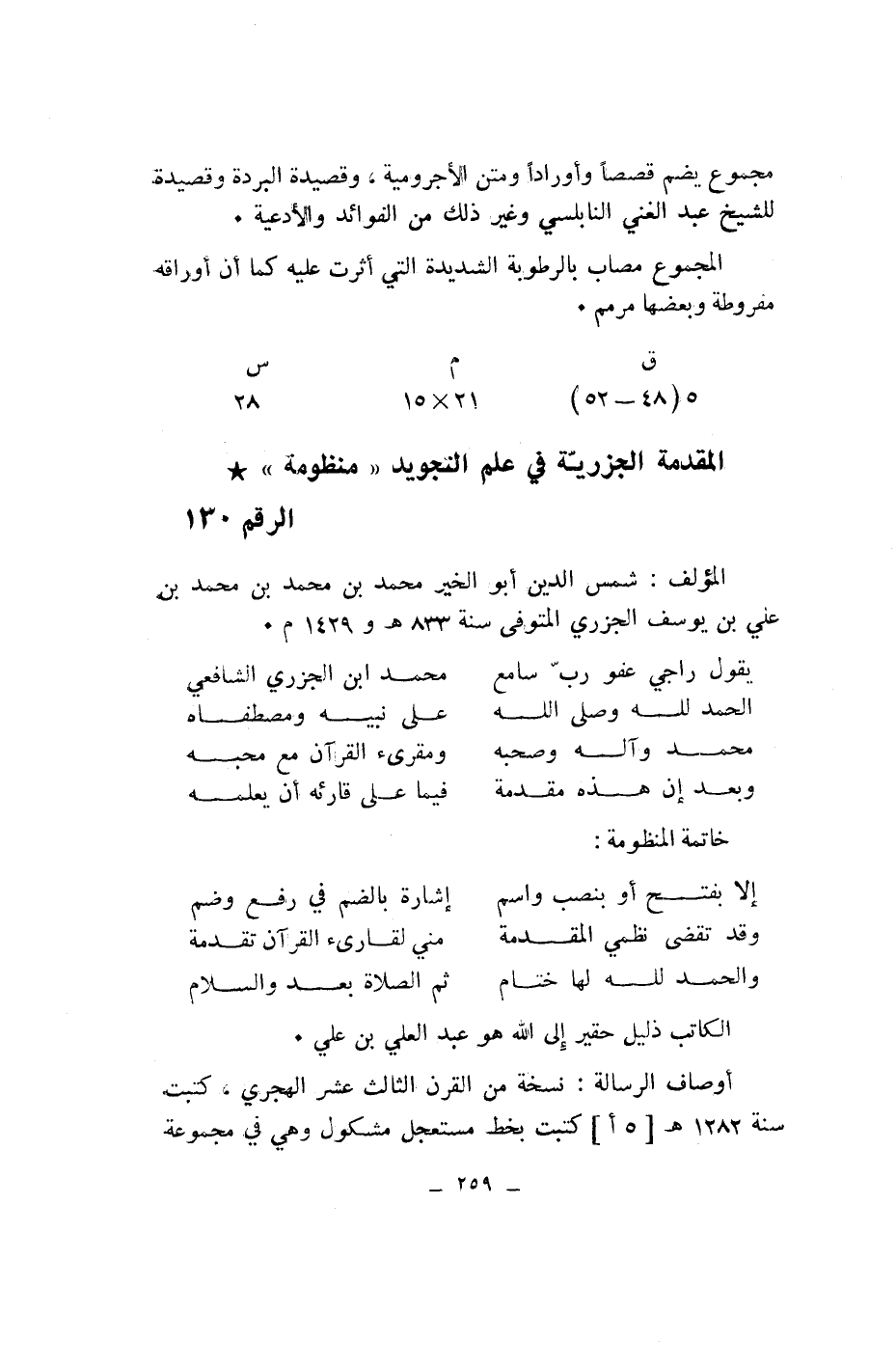 المقدمة الجزريّة في علم التجويد «منظومة» * الرقم 130