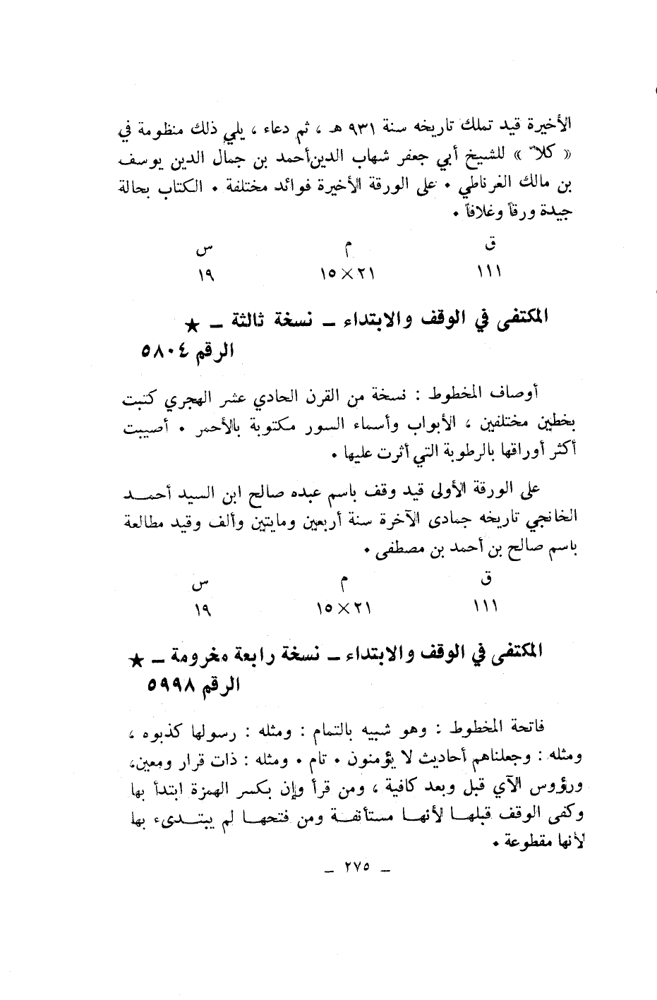 المكتفى في الوقف والابتداء- نسخة ثالثة-* الرقم 5804