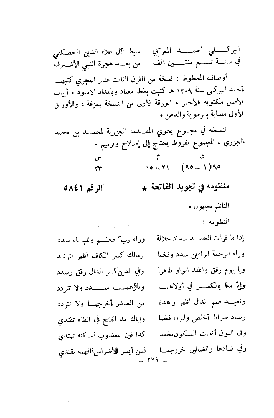منظومة في تجويد الفاتحة* الرقم 5841