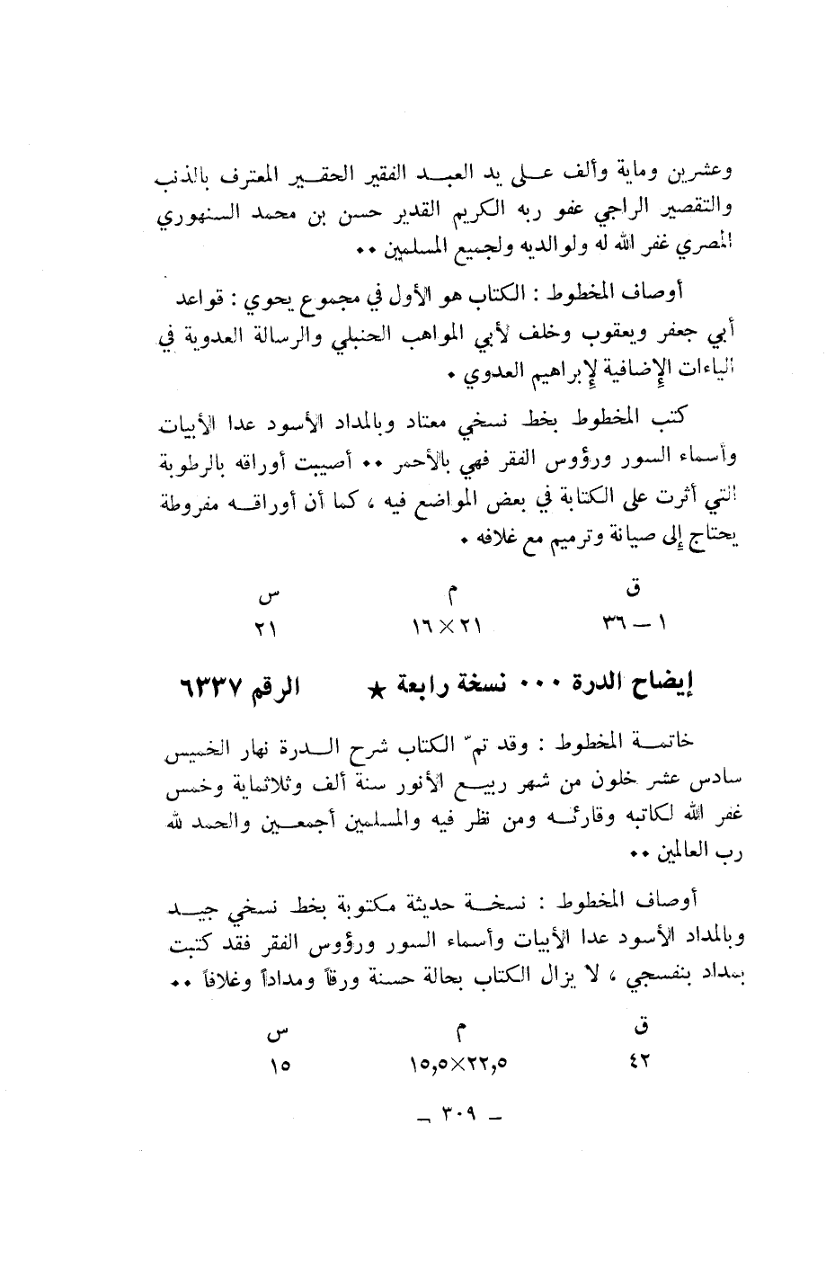 وعشرين ومائة وألف على يد العبد الفقير الحقير المعترف بالذنب والتقصير الراجي عفو ربه الكريم القدير حسن بن محمد السنهوري المصري غفر الله له ولوالديه ولجميع المسلمين ..