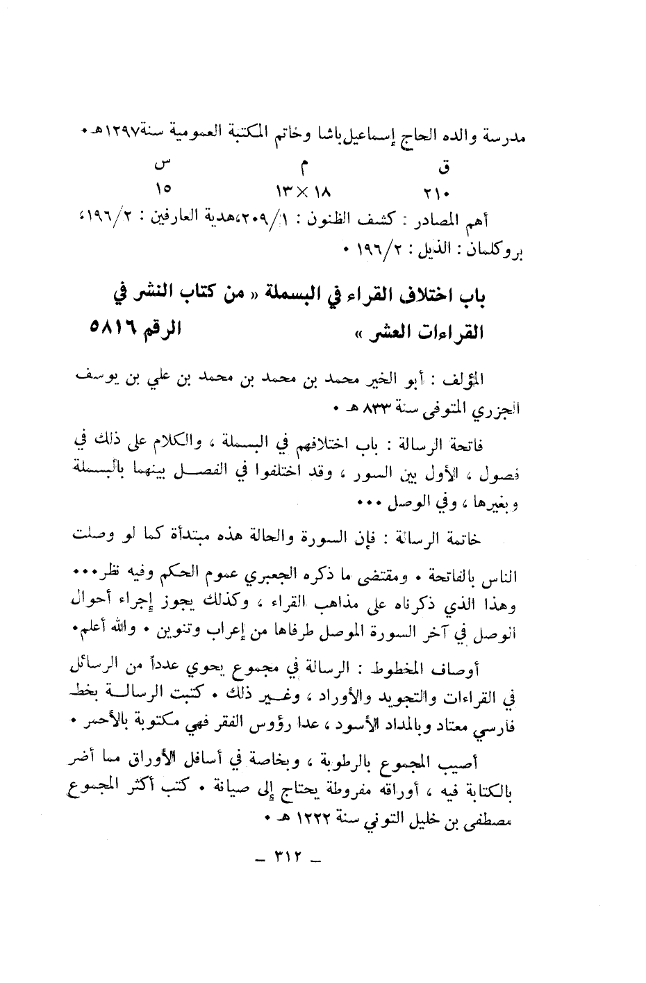 باب اختلاف القراء في البسملة «من كتاب النشر في القراءات العشر» الرقم 5816