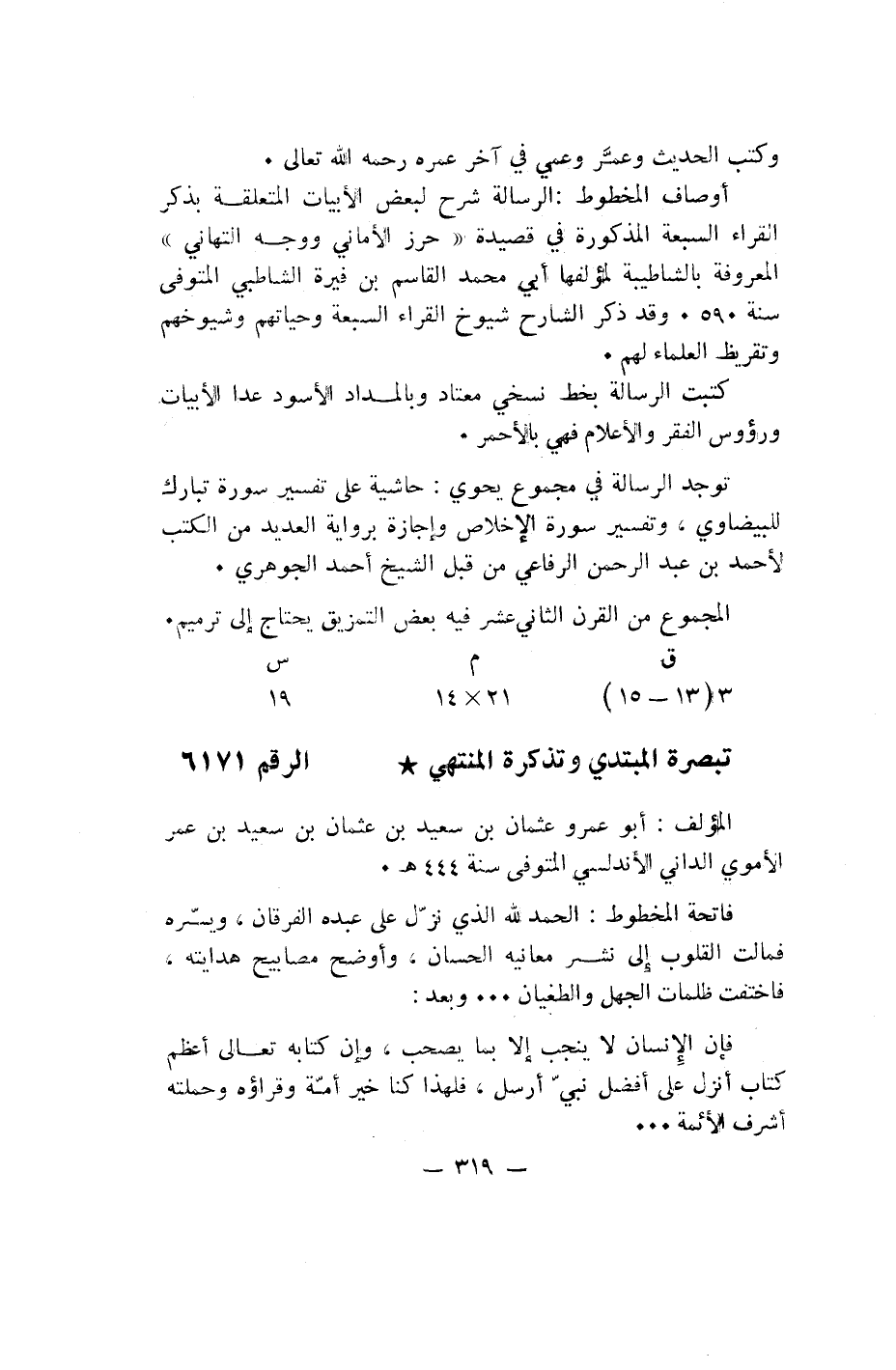 تبصرة المبتدي وتذكرة المنتهي* الرقم 6171