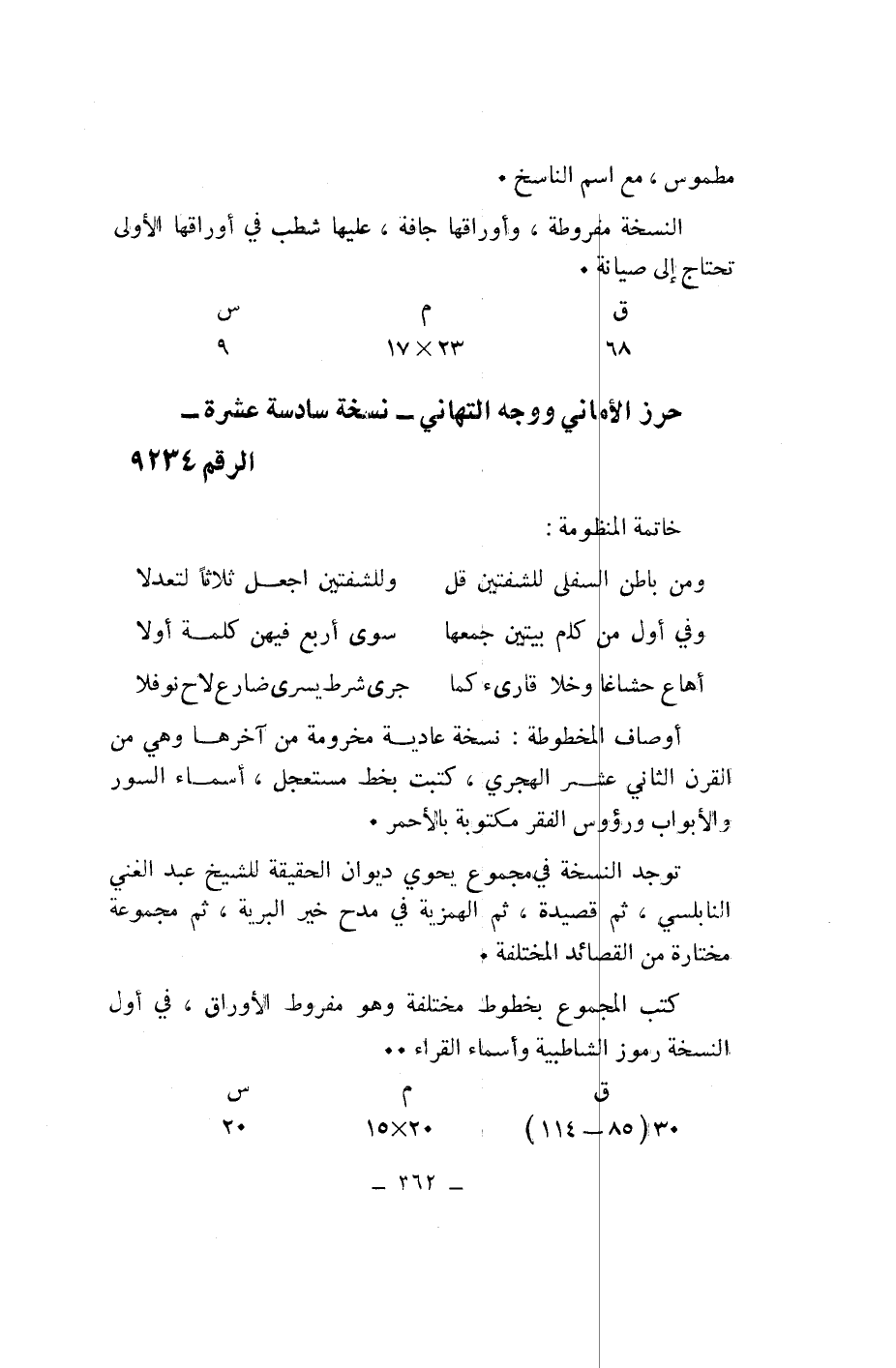 حرز الأماني ووجه التهاني- نسخة سادسة عشرة- الرقم 9234