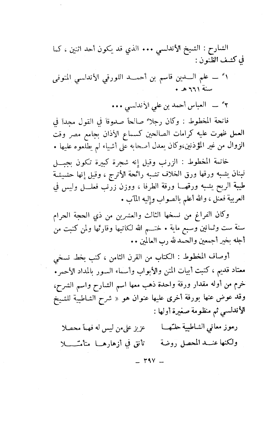 الشارح: الشيخ الأندلسي ... الذي قد يكون أحد اثنين، كما في كشف الظنون: