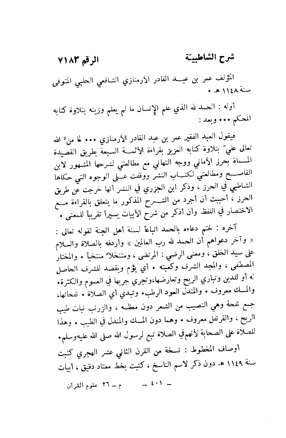 شرح الشاطبيّة الرقم 7183