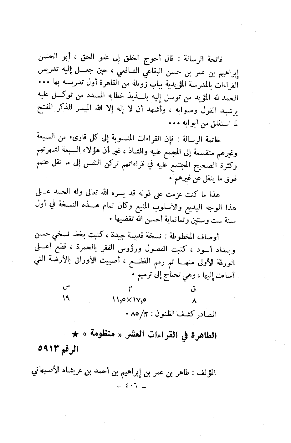 الطاهرة في القراءات العشر «منظومة» * الرقم 5913