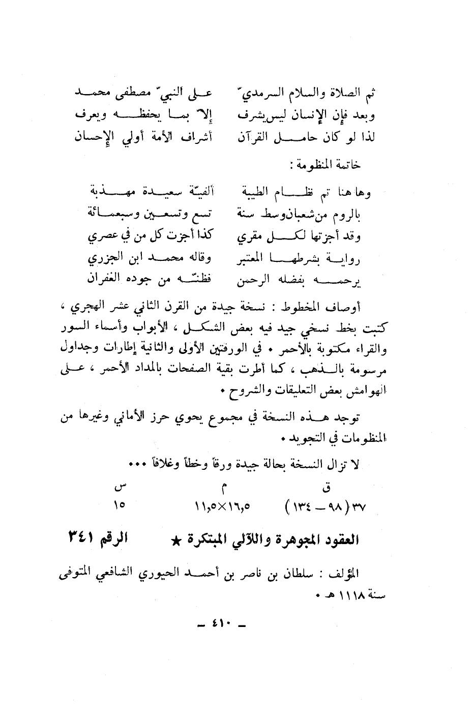 العقود المجوهرة واللآلي المبتكرة* الرقم 341
