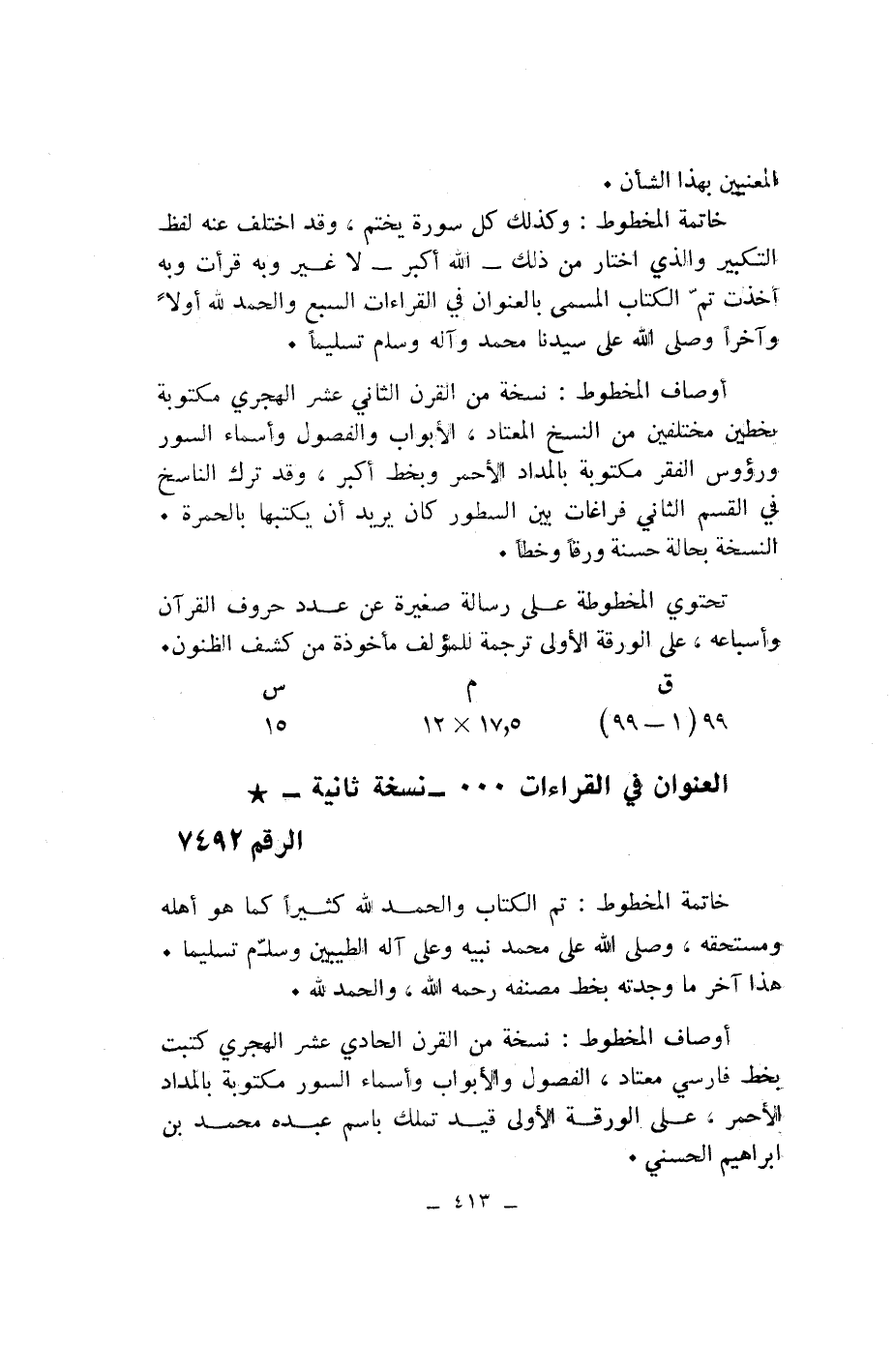 العنوان في القراءات ... - نسخة ثانية-* الرقم 7492
