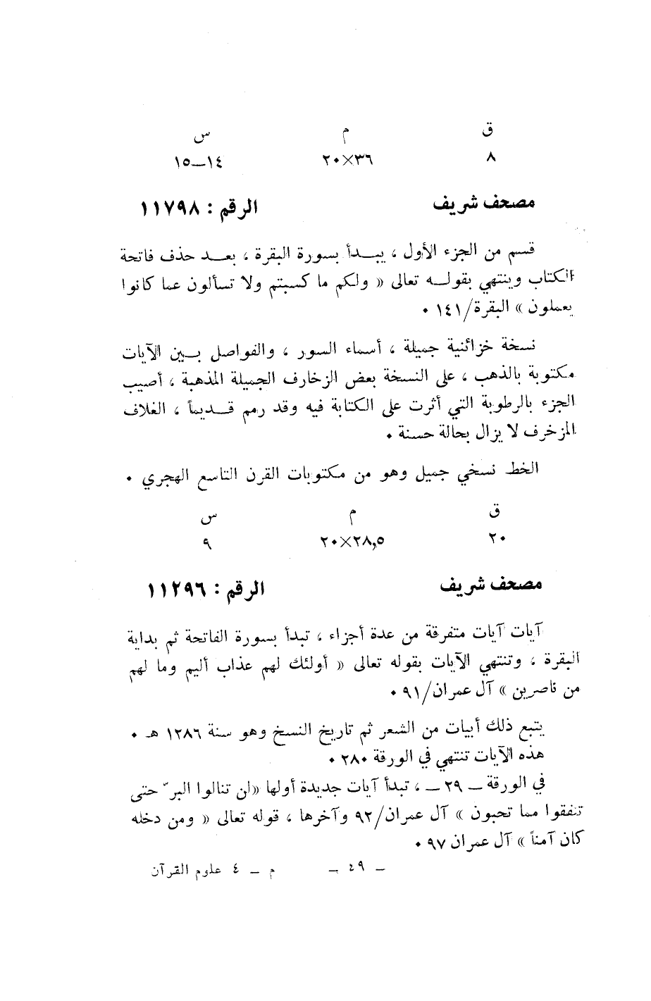 في الورقة- 29 - ، تبدأ آيات جديدة أولها «لَنْ تَنالُوا الْبِرَّ حَتَّى تُنْفِقُوا مِمَّا تُحِبُّونَ» آل عمران/ 92 وآخرها، قوله تعالى «وَمَنْ دَخَلَهُ كانَ آمِناً» آل عمران 97.