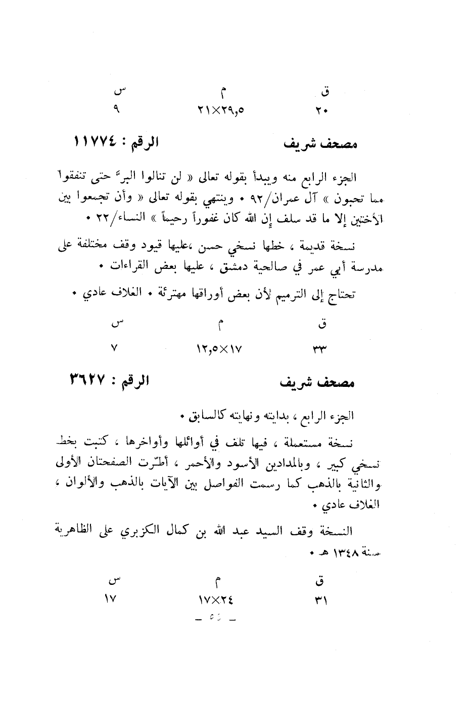 مصحف شريف الرقم: 3627