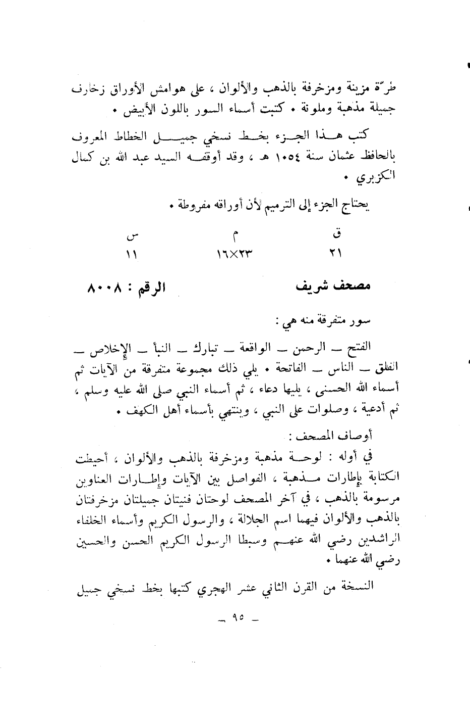 كتب هذا الجزء بخط نسخي جميل الخطاط المعروف بالحافظ عثمان سنة 1054 هـ، وقد أوقفه السيد عبد الله بن كمال الكزبري.