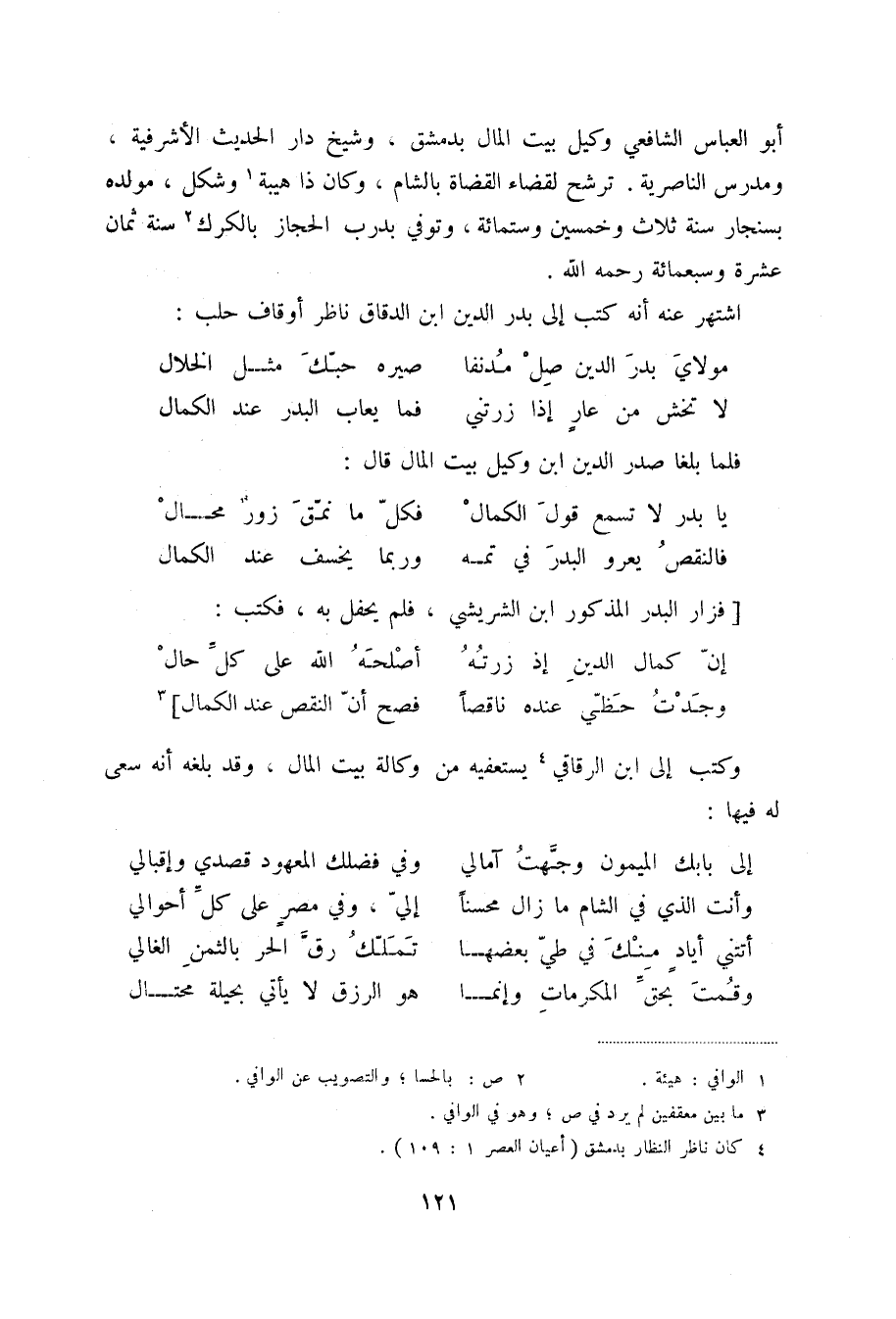 وجدت حظّي عنده ناقصاً ... فصح أنّ النقص عند الكمال] (3) وكتب إلى ابن الرقاقي (4) يستعفيه من وكالة بيت المال، وقد بلغه أنه سعى له فيها:
