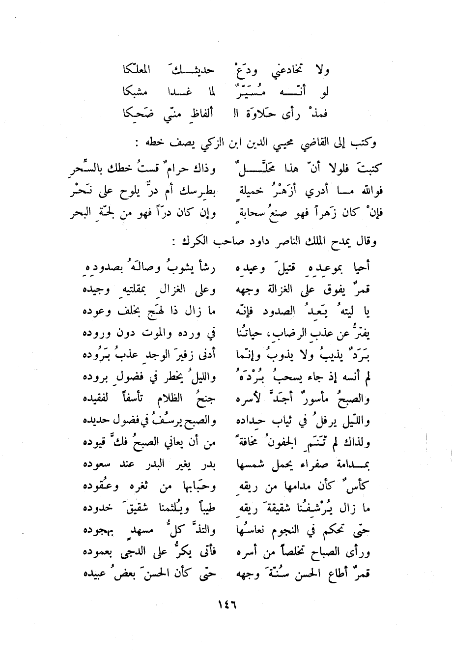 فإن كان زهراً فهو صنع سحابةٍ ... وإن كان درّاً فهو من لجّة البحر وقال يمدح الملك الناصر داود صاحب الكرك:
