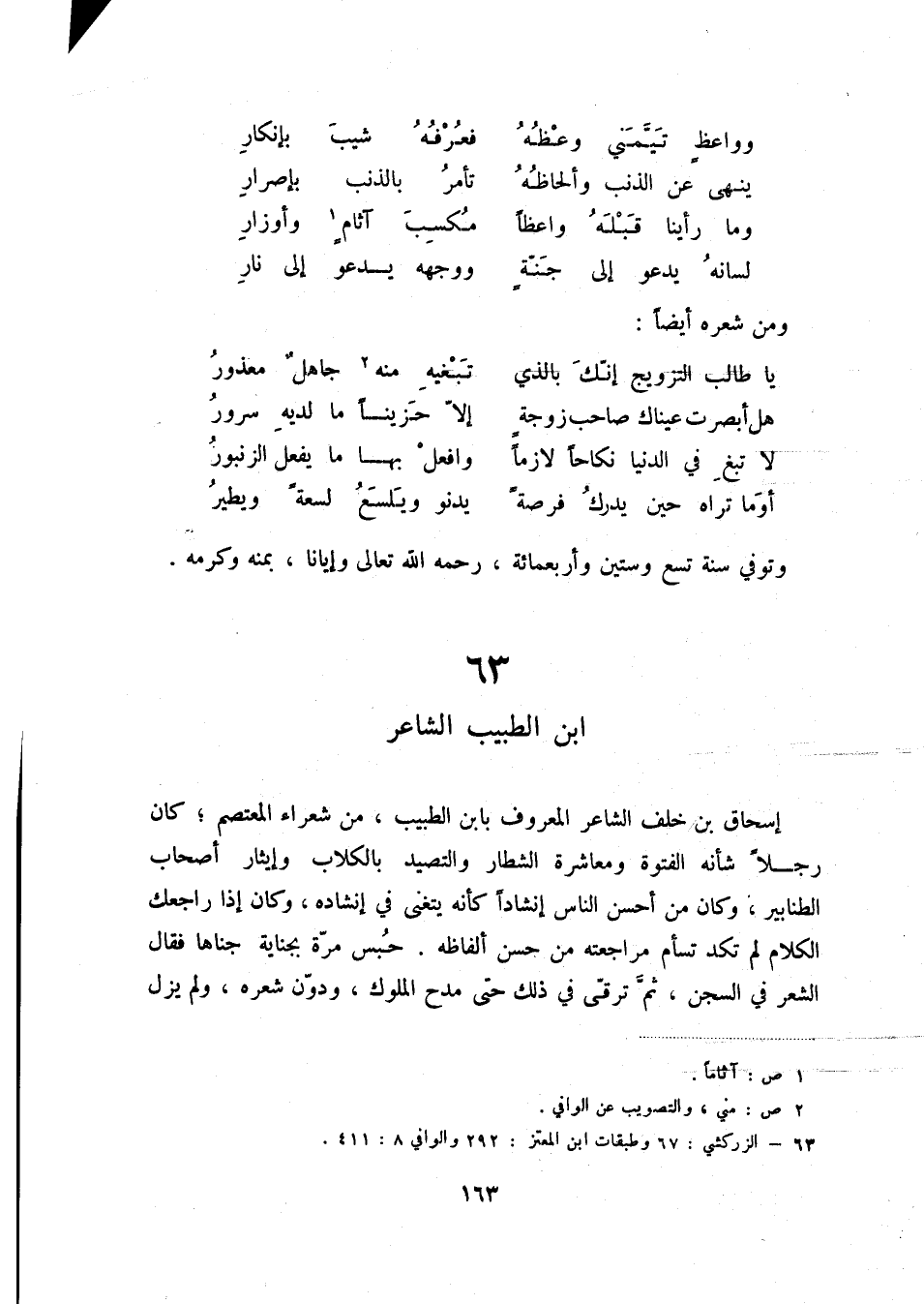 (3) الزركشي: 67 وطبقات ابن المعتز: 292 والوافي 8: 411.