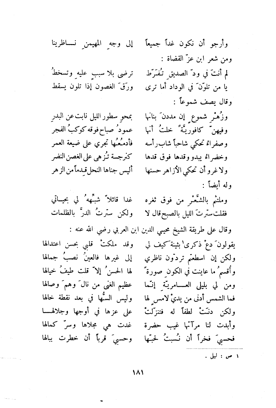 فقلت سترت الليل بالصبح قال لا ... ولكن سترت الدرّ بالظلمات وقال على طريقة الشيخ محيي الدين ابن العربي رضي الله عنه: