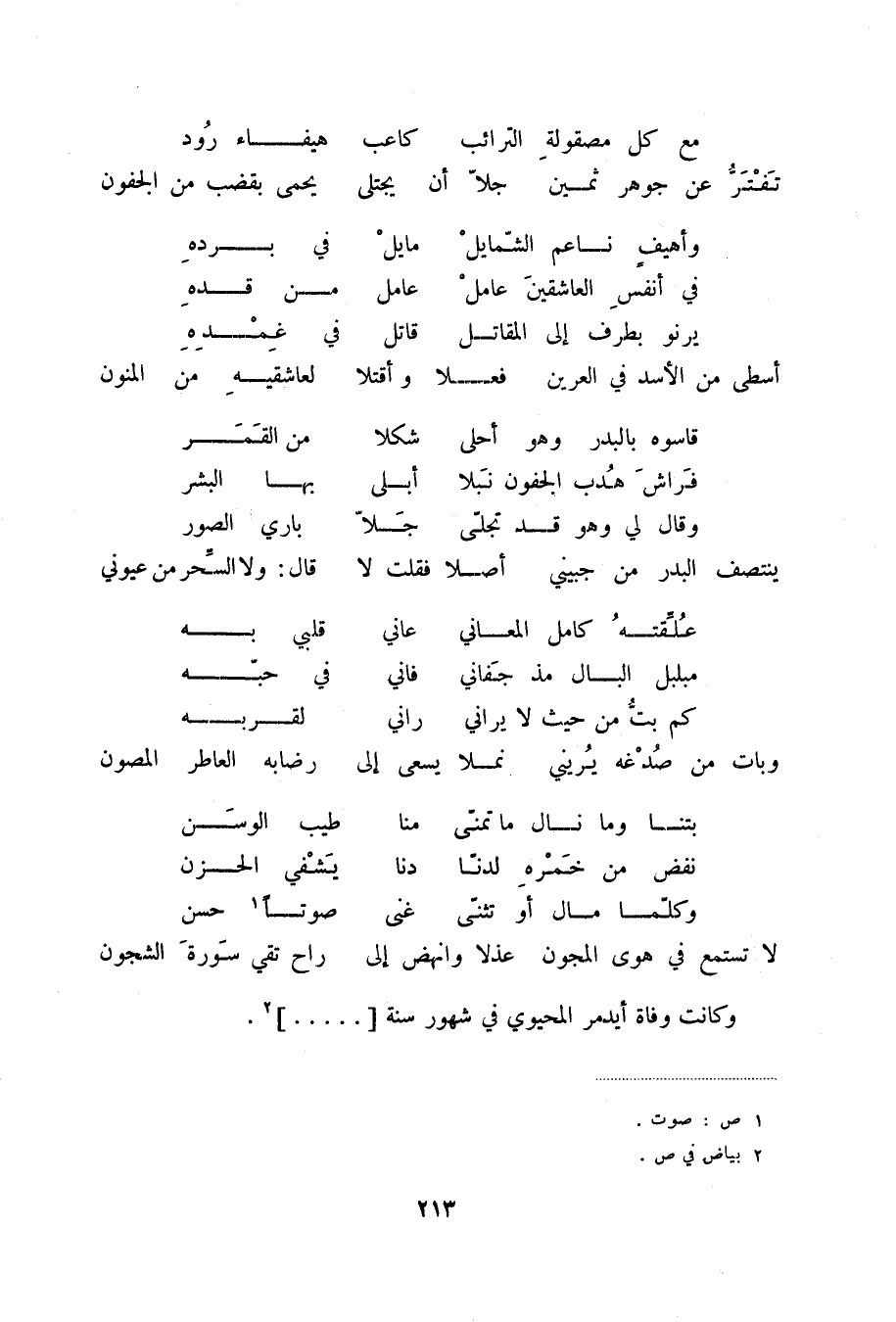 لا تستمع في هوى المجون ... عذلا وانهض إلى راح تقي سورة الشجون وكانت وفاة أيدمر المحيوي في شهور سنة...... (2)