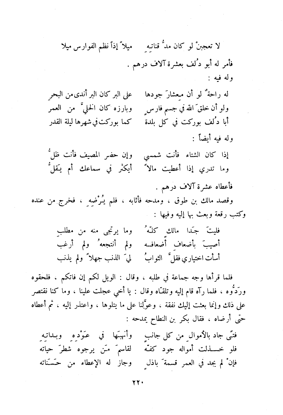 لا تعجبن لو كان مدّ قناته ... ميلاً إذاً نظم الفوارس ميلا فأمر له أبو دلف بعشرة آلاف درهم.