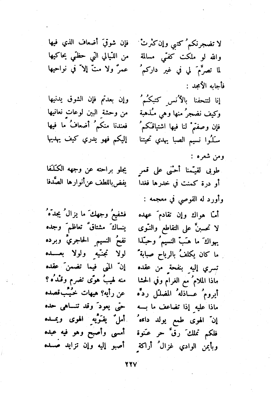 لما تصرّم لي في غير داركم ... عمرٌ ولا متّ إلاّ في نواحيها فأجابه الأمجد: