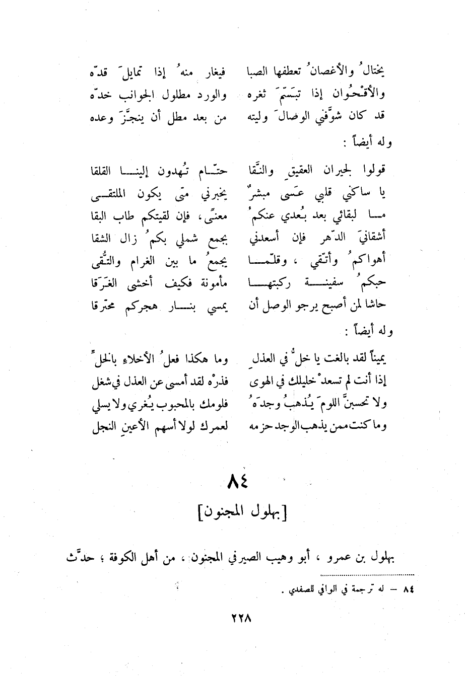 وما كنت ممن يذهب الوجد حزمه ... لعمرك لولا أسه الأعين النجل 84 (1)