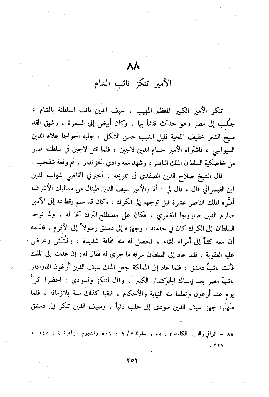 تنكز الأمير الكبير المعظم المهيب، سيف الدين نائب السلطنة بالشام؛ جلب إلى مصر وهو حدث فنشأ بها، وكان أبيض إلى السمرة، رشيق القد مليح الشعر خفيف اللحية قليل الشيب حسن الشكل، جلبه الخواجا علاء الدين السيواسي، فاشتراه الأمير حسام الدين لاجين، فلما قتل في سلطنته صار من خاصكية السلطان الملك الناصر، وشهد معه وادي الخزندار، ثم وقعة شقحب.