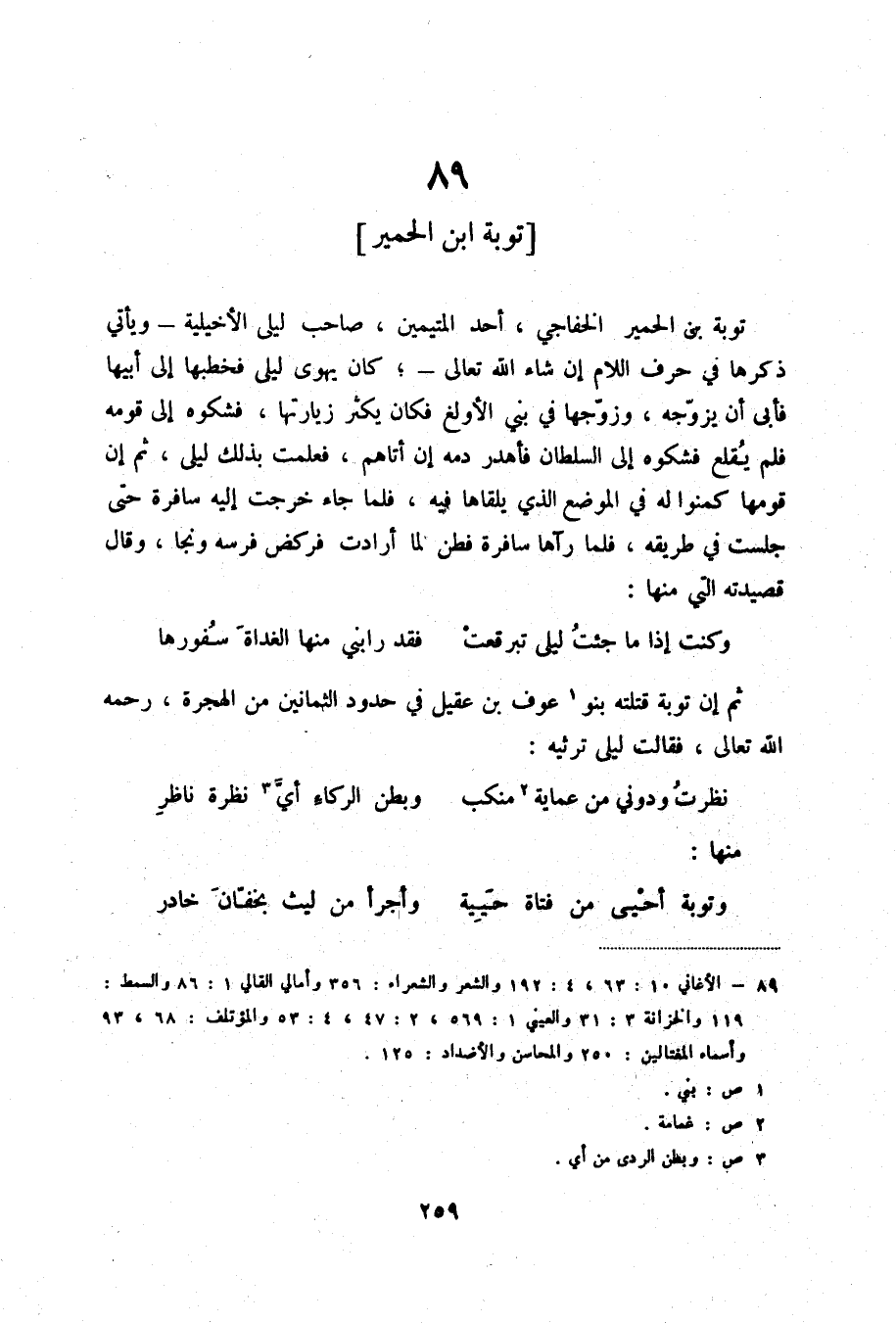 (1) الأغاني 10: 63، 4: 192 والشعر والشعراء: 356 وأمالي القالي 1: 86 والسمط: 119 والخزانة 3: 31 والعيني 1: 569، 2: 47، 4: 53 والمؤتلف: 68، 93 وأسماء المغتالين: 250 والمحاسن والأضداد: 125.
