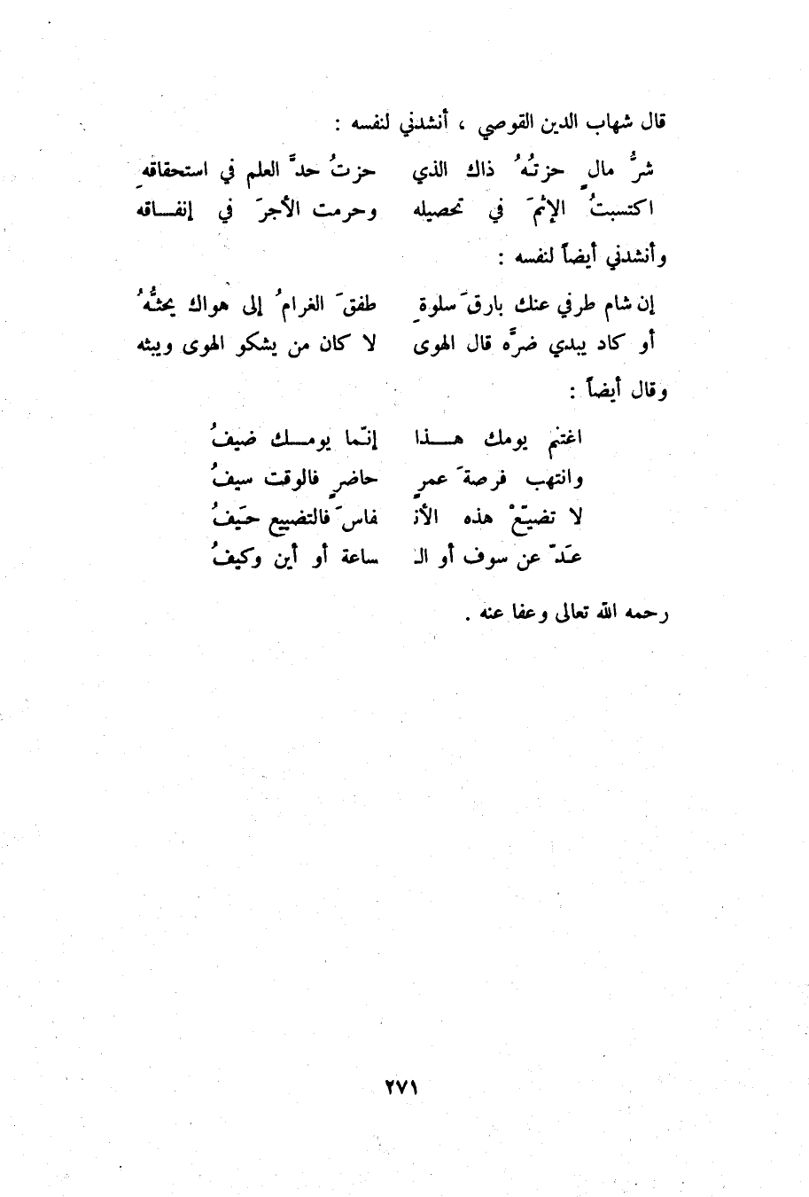 اكتسبت الإثم في تحصيله ... وحرمت الأجر في إنفاقه وأنشدني أيضاً لنفسه: