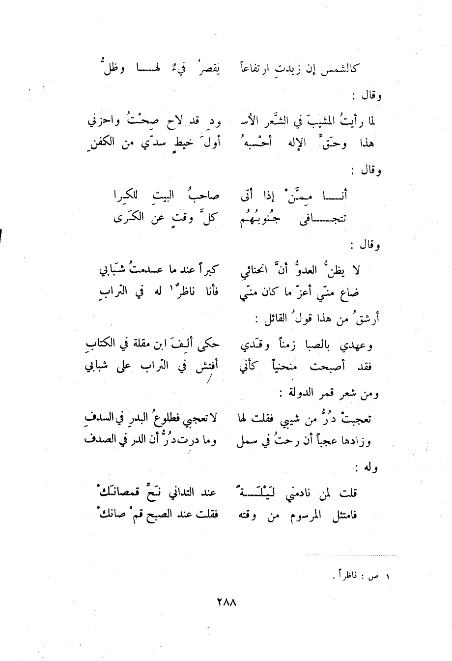 فقد أصبحت منحنياً كأني ... أفتش في التراب على شبابي ومن شعر قمر الدولة:
