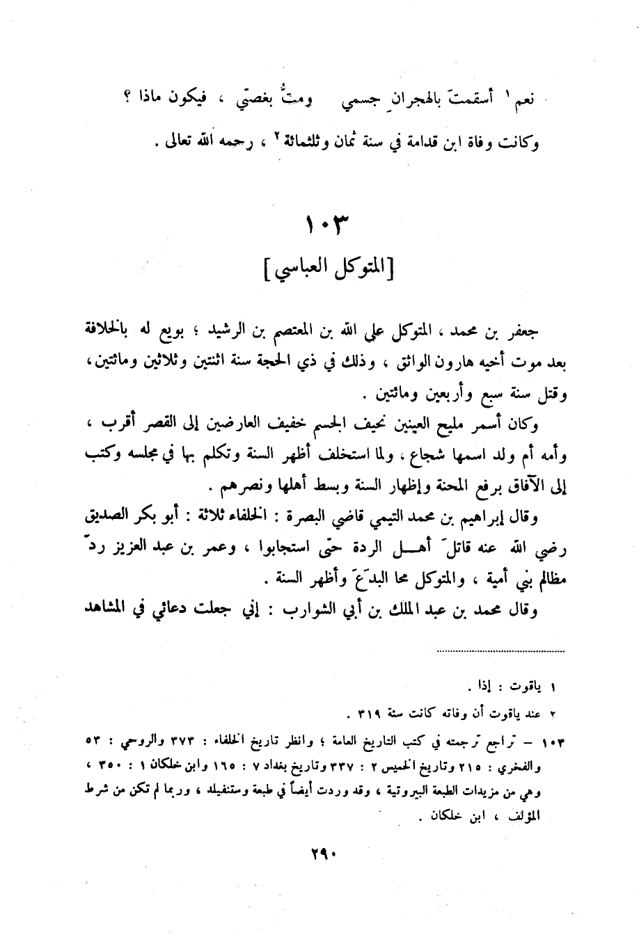 (3) تراجع ترجمته في كتب التاريخ العامة؛ وانظر تاريخ الخلفاء: 373 والروحي: 53 والفخري: 215 وتاريخ الخميس 2: 337 وتاريخ بغداد 7: 165 وابن خلكان 1: 350، وهي من مزيدات الطبعة البيروتية، وقد وردت أيضاً في طبعة وستنفيلد، وربما لم تكن من شرط المؤلف، ابن خلكان.