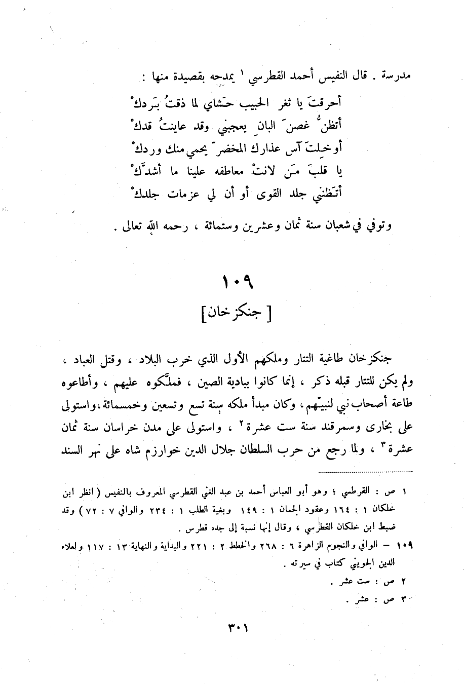 (1) ص: القرطسي؛ وهو أبو العباس أحمد بن عبد النبي القرطسي المعروف بالنفيس (انظر ابن خلكان 1: 164 وعقود الجمان 1: 149 وبغية الطلب 1: 234 والوافي 7: 72) وقد ضبط ابن خلكان القرطسي، وقال إنها نسبة إلى جده قطرس.