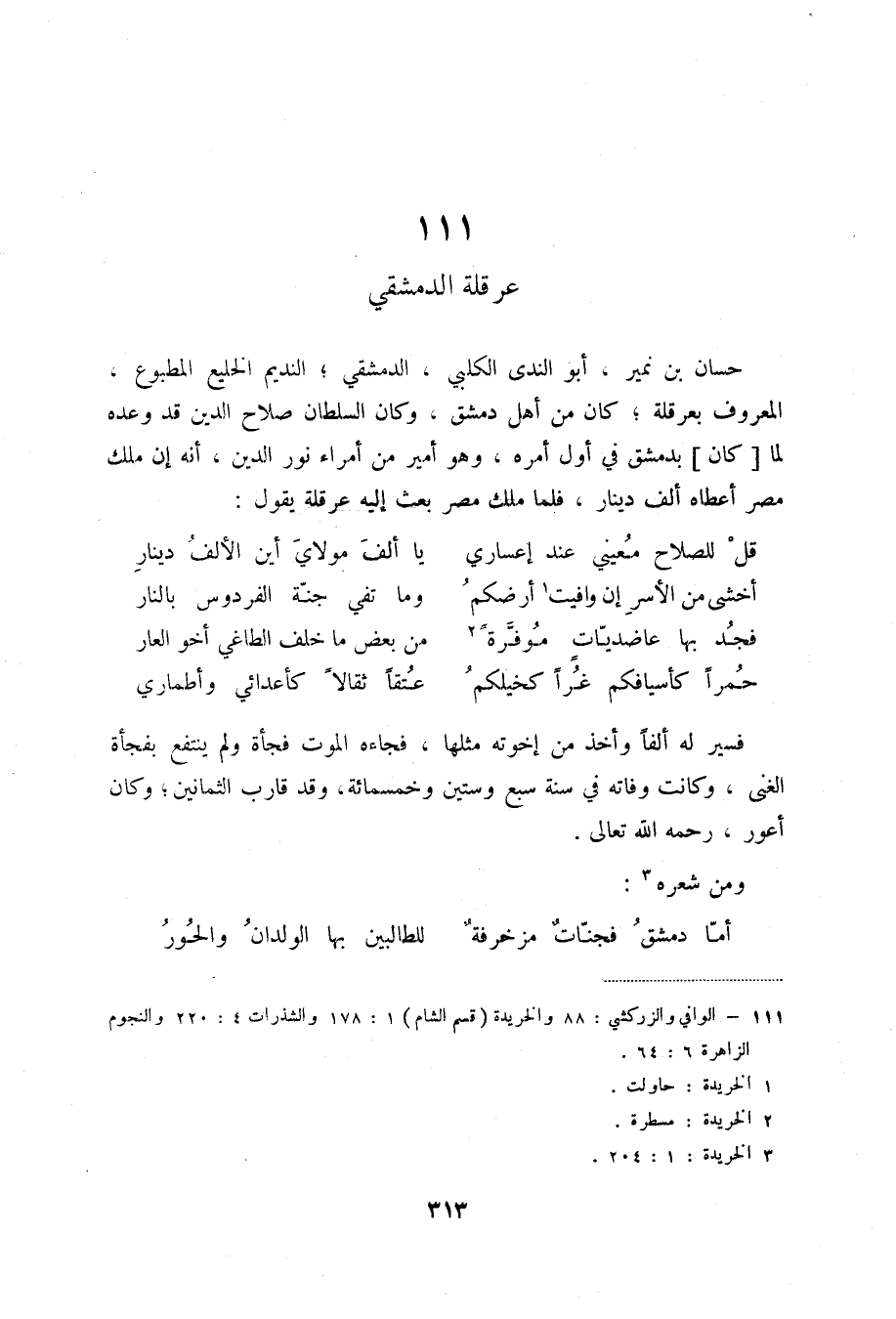 (1) الوفي والزركشي: 88 والخريدة (قسم الشام) 1: 178 والشذرات 4: 220 والنجوم الزاهرة 6: 64.